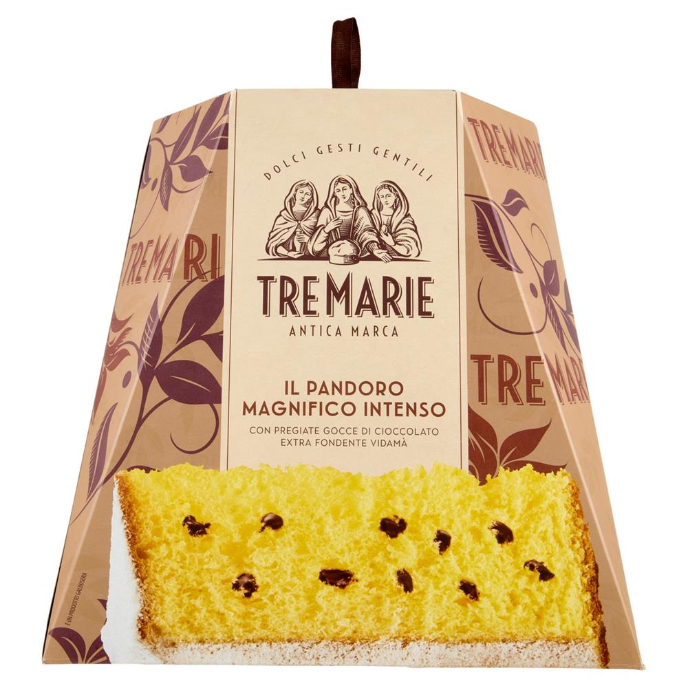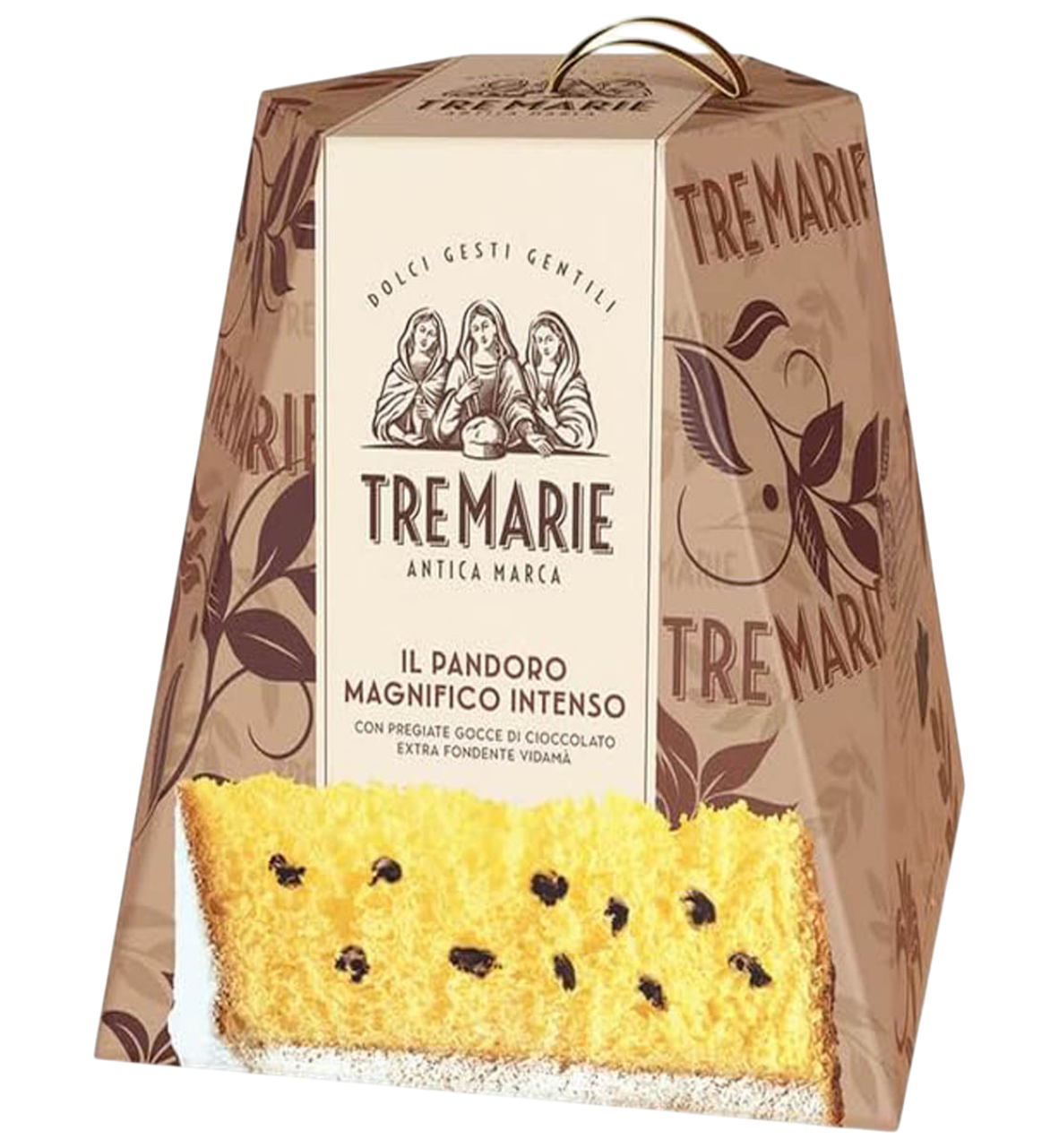 Scoprite il Pandoro Magnifico Intenso di Tre Marie, un capolavoro della pasticceria italiana che unisce la tradizione del classico pandoro con l’irresistibile aggiunta di pregiate gocce di cioccolato fondente. Questo sontuoso dolce da 1kg è perfetto per le festività o per qualsiasi momento speciale. La sua soffice e dorata consistenza racchiude deliziose gocce di cioccolato fondente di alta qualità, creando un contrasto di sapori indimenticabile. Realizzato secondo l’antica ricetta, questo pandoro si distingue per la sua texture leggera e vellutata, risultato di una lenta lievitazione naturale. La confezione elegante lo rende anche un raffinato regalo. Ogni fetta rivela un’equilibrata distribuzione di gocce di cioccolato che si fondono perfettamente con la morbida pasta del pandoro. Conservare in luogo fresco e asciutto per mantenere intatte le sue caratteristiche organolettiche. Un dolce che porta sulla vostra tavola il prestigio della pasticceria italiana di alta qualità.