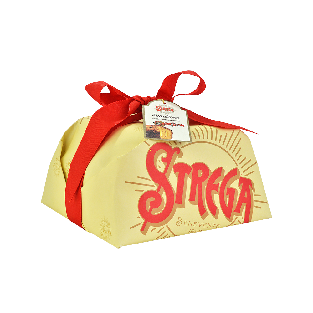 Ingredienti: farina di frumento, crema di farcitura (15%) al Liquore Strega (sciroppo di glucosio, acqua, zucchero, tuorlo d’uovo zuccherato (tuorlo d’uovo, zucchero), liquore Strega (9%) (distillati idroalcolici di piante aromatiche (alcool, acqua, piante aromatiche), acqua, zucchero, infuso di zafferano), oli vegetali (girasole, cartamo, oliva in proporzione variabile), latte intero in polvere, amido modificato (E1422), gelificante: pectina (E440ii), conservante: potassio sorbato (E202), sale), uva sultanina, zucchero, burro, acqua, tuorlo d‘uova fresche, scorze candite di arancia (scorze di arancia, sciroppo di glucosio-fruttosio, zucchero, correttore di acidità: acido citrico), lievito naturale (farina di frumento, acqua), emulsionanti: mono e digliceridi degli acidi grassi (E471), sciroppo di glucosio, latte intero in polvere, sale, aromi naturali. Può contenere frutta a guscio, senape e soja.