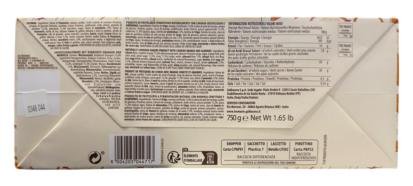 | Tipologia | Tre Marie Colomba Tradizionale in Shopper 750g |
