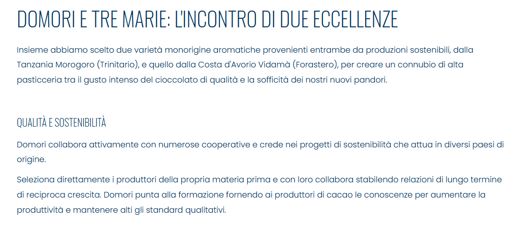 Ingredienti: Farina di frumento, uova fresche da galline allevate a terra, burro 14,5%, zucchero, cioccolato fondente extra 9% (pasta di cacao, zucchero di canna, burro di cacao, emulsionante: lecitina di soia), lievito naturale [lievito madre (farina di frumento, acqua), lievito], latte intero fresco pastorizzato, fruttosio, emulsionante: mono- e digliceridi degli acidi grassi; burro di cacao, sale, aromi naturali.