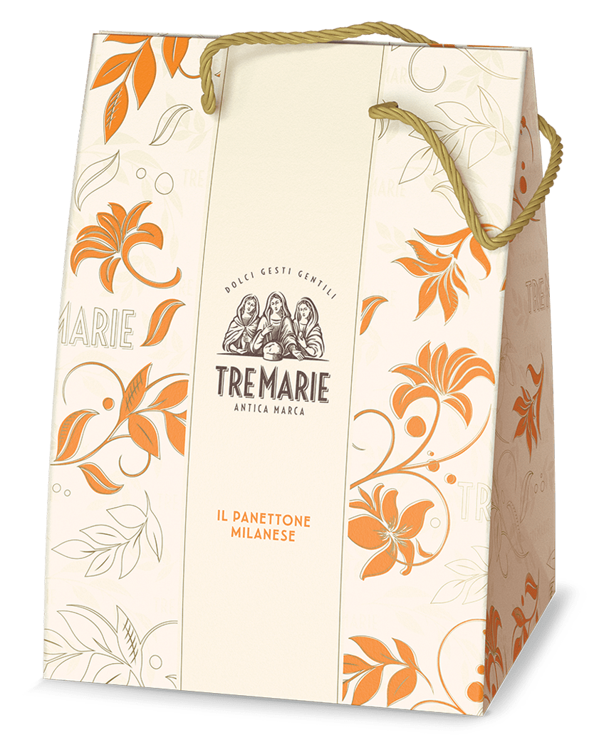 Scoprite l’autentico sapore della tradizione milanese con il Panettone Tre Marie, un capolavoro di pasticceria da 750g confezionato in un’elegante busta shopper. Questo soffice dolce natalizio è arricchito con uvetta sultanina (16,4%) e deliziosi canditi di agrumi (11,2%), che donano un equilibrio perfetto tra dolcezza e fragranza. La sua consistenza soffice e delicata è il risultato di una lavorazione accurata secondo l’antica ricetta milanese. Ogni fetta rivela un impasto dorato e profumato, ideale per le festività o come regalo raffinato. Il panettone viene realizzato con ingredienti selezionati come burro di alta qualità e farina di frumento, seguendo un processo di lievitazione naturale che garantisce la caratteristica sofficità. La confezione presenta un design elegante con motivi floreali arancioni, perfetta per essere donata o esposta sulla tavola delle feste. Si consiglia di conservare in luogo asciutto e di servire il prodotto a temperatura ambiente per apprezzarne al meglio l’aroma e la consistenza.