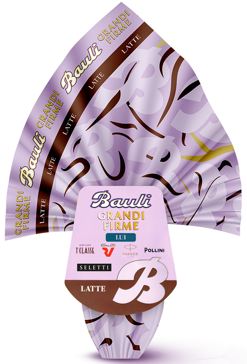 Uovo di Pasqua Bauli Grandi Firme Lui al cioccolato al latte da 365g con sorpresa firmata da brand iconici. Un prodotto elegante e gustoso che unisce il piacere del cioccolato Bauli alla sorpresa di accessori di qualità pensati per il pubblico maschile. Perfetto come idea regalo pasquale.