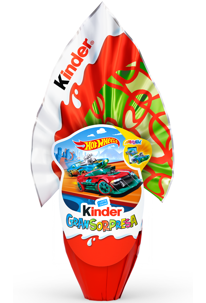 Kinder Gransorpresa Hot Wheels da 150g è l’uovo di cioccolato che unisce il gusto unico del cioccolato finissimo al latte Kinder all’emozione della sorpresa firmata Hot Wheels. Pensato per rendere ancora più speciale il momento della scoperta, questo uovo racchiude tutta la qualità Ferrero e il divertimento di uno dei brand di macchinine più amati al mondo. Il guscio di cioccolato finissimo al latte è realizzato con la ricetta iconica Kinder, caratterizzata da una consistenza cremosa e da un perfetto equilibrio tra latte e cacao, capace di conquistare sia i bambini che gli adulti. All’interno si trova una sorpresa a tema Hot Wheels che richiama il mondo delle corse, dei motori e della velocità, rendendo ogni apertura un momento di entusiasmo e divertimento. Kinder Gransorpresa non è soltanto un uovo di cioccolato, ma una vera esperienza: prima il piacere di rompere il guscio e assaporare il cioccolato, poi la curiosità e la gioia di scoprire il giocattolo nascosto. Ideale come regalo per bambini, come sorpresa durante le festività o come momento speciale da condividere in famiglia, questo uovo da 150g rappresenta un classico intramontabile della tradizione Kinder. La collaborazione con Hot Wheels aggiunge un ulteriore elemento di fascino, perfetto per tutti i piccoli appassionati di auto e collezionisti di veicoli giocattolo.