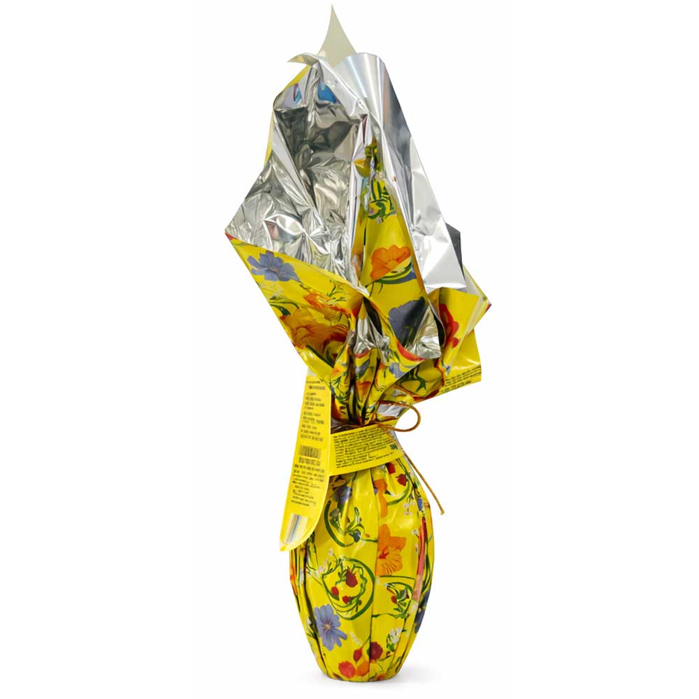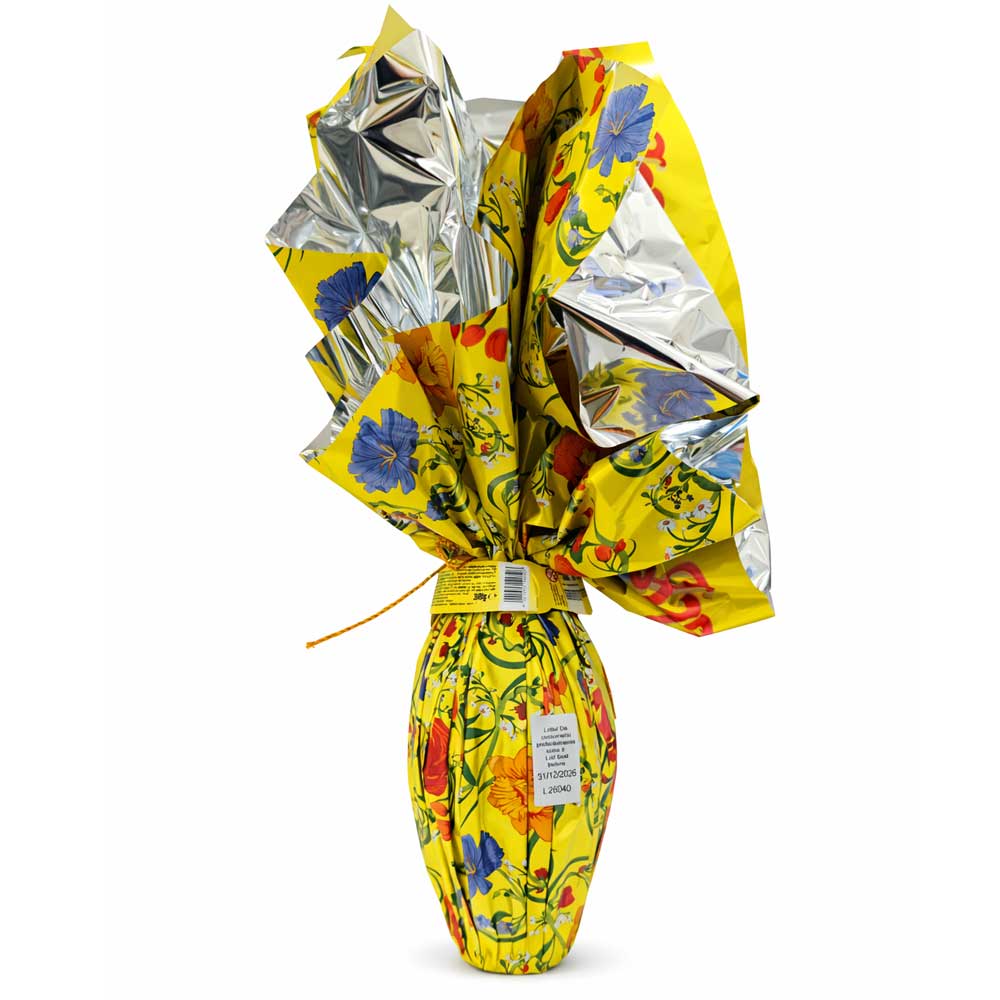La presenza della granella di torrone aggiunge una nota croccante e aromatica che valorizza la consistenza e rende ogni assaggio più appagante. La confezione floreale, elegante e riconoscibile, lo rende perfetto anche come idea regalo pasquale. All’interno è presente una sorpresa, per completare l’esperienza dello scarto.