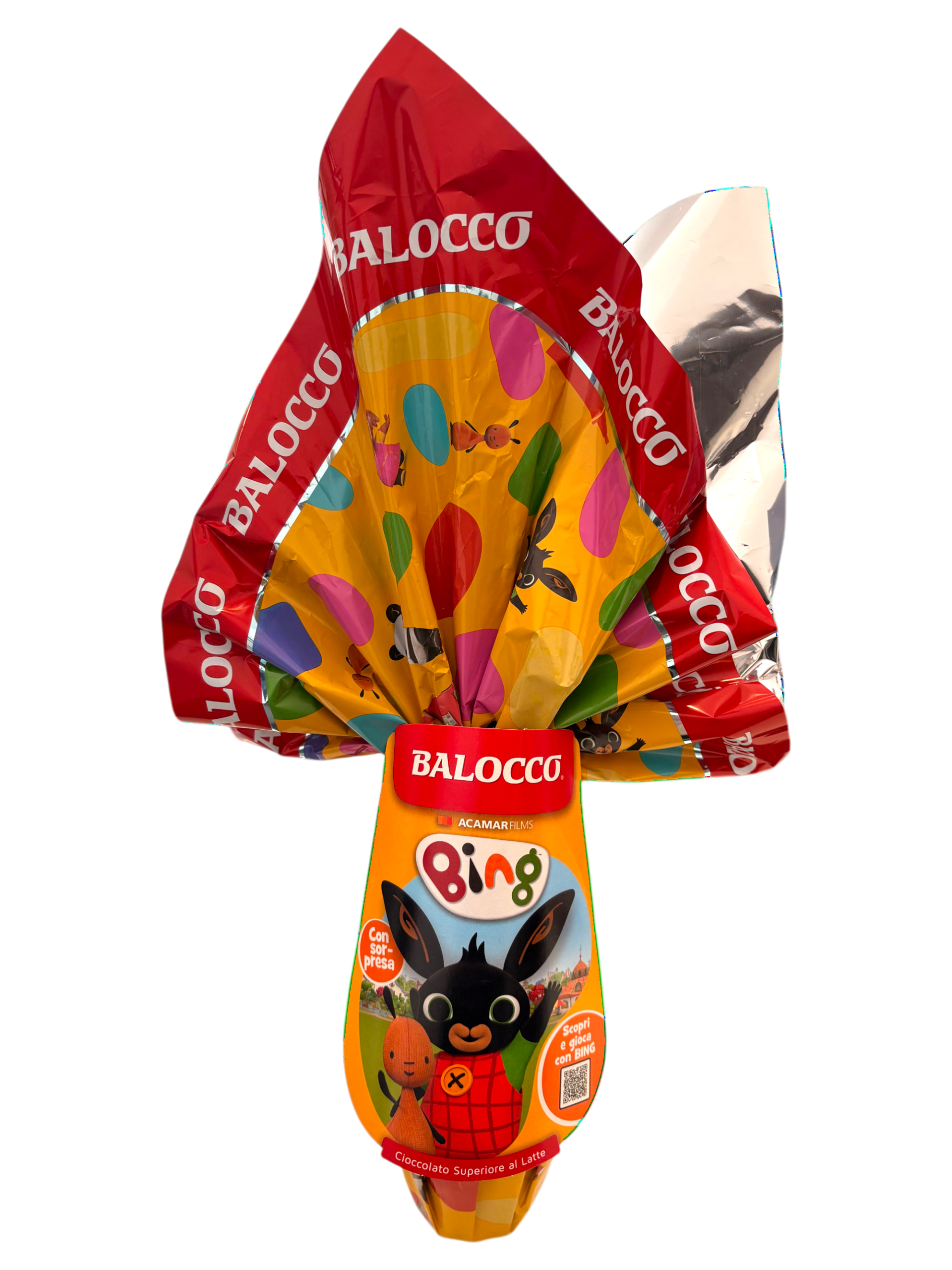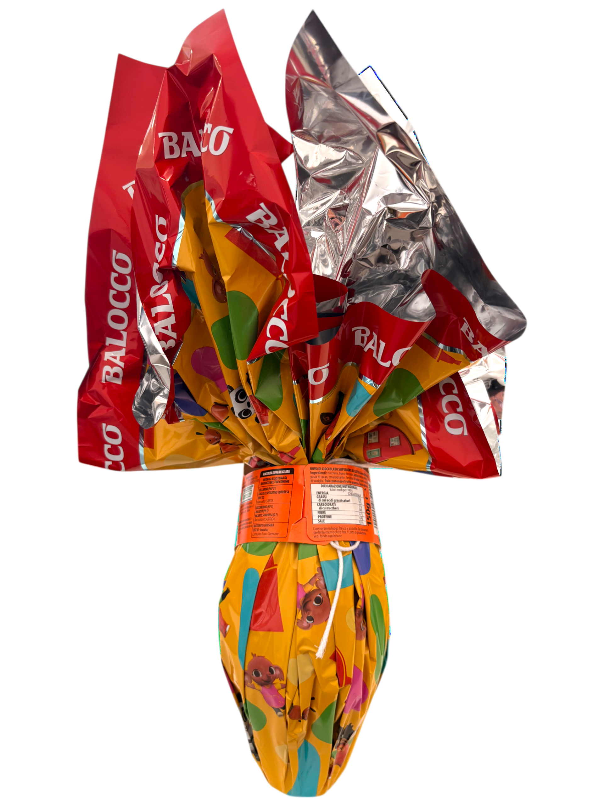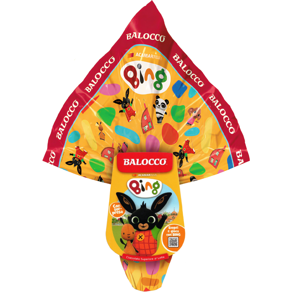 Uovo di Pasqua Balocco Bing da 150 g con cioccolato al latte superiore e sorpresa a tema Bing, perfetto per Pasqua e regali ai più piccoli.