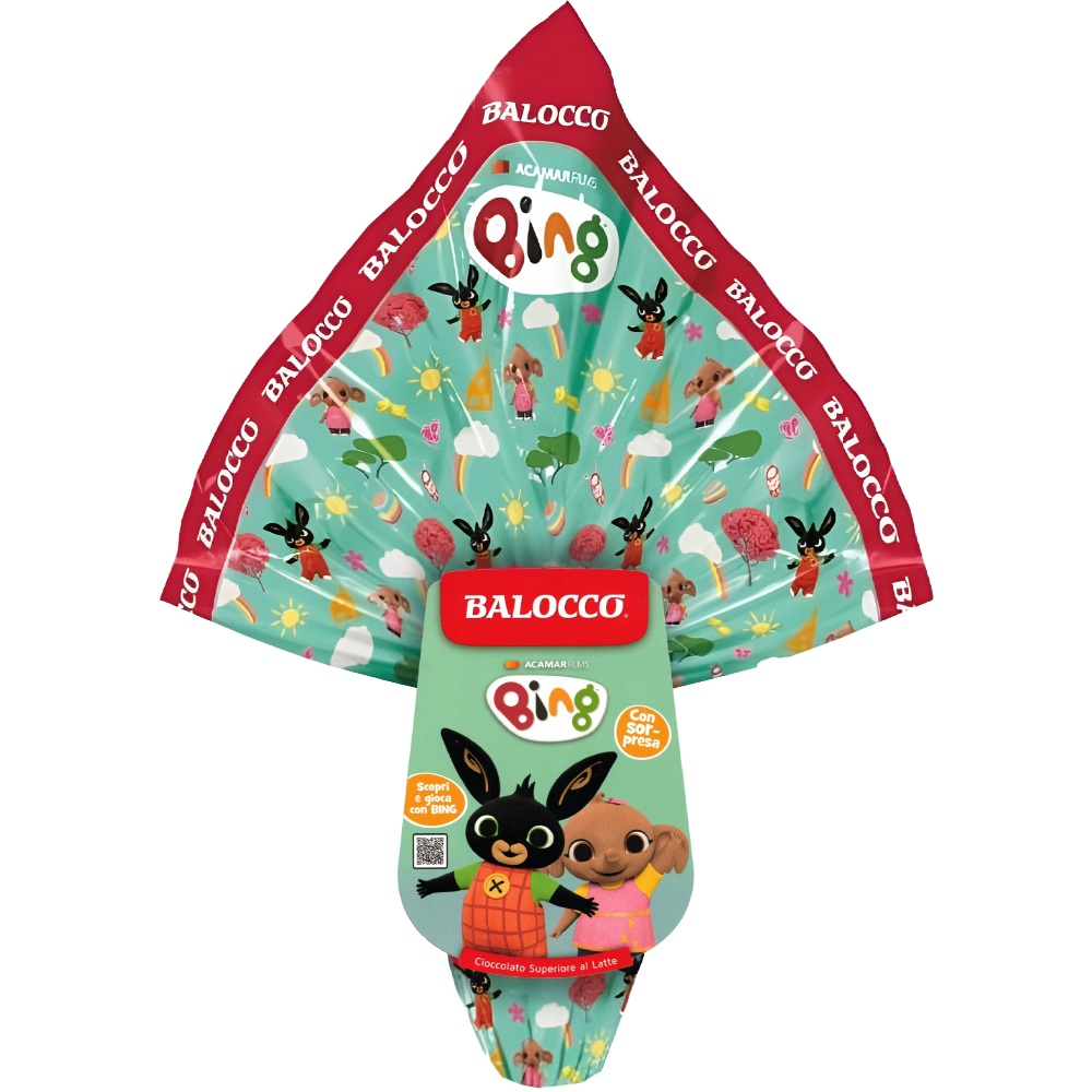 Uovo di Pasqua Balocco Bing da 240g con cioccolato al latte superiore e sorpresa a tema Bing, perfetto per Pasqua e regali ai più piccoli.