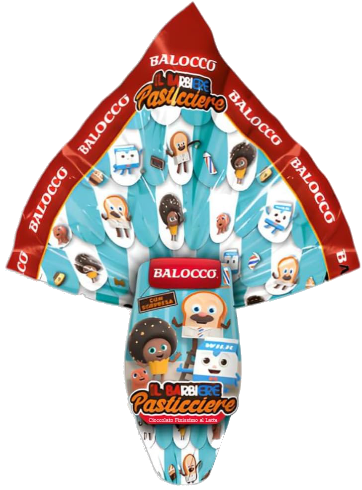 Scopri l’uovo Balocco del barbiere pasticcere! Questo delizioso uovo di finissimo cioccolato al latte è decorato con i personaggi preferiti del cartone, perfetto per far brillare gli occhi dei più piccoli durante la Pasqua 2025. Ogni uovo contiene una sorpresa speciale che renderà l’esperienza ancora più dolce. Il cioccolato al latte di alta qualità offre un gusto cremoso e avvolgente che delizierà il palato di grandi e piccini.