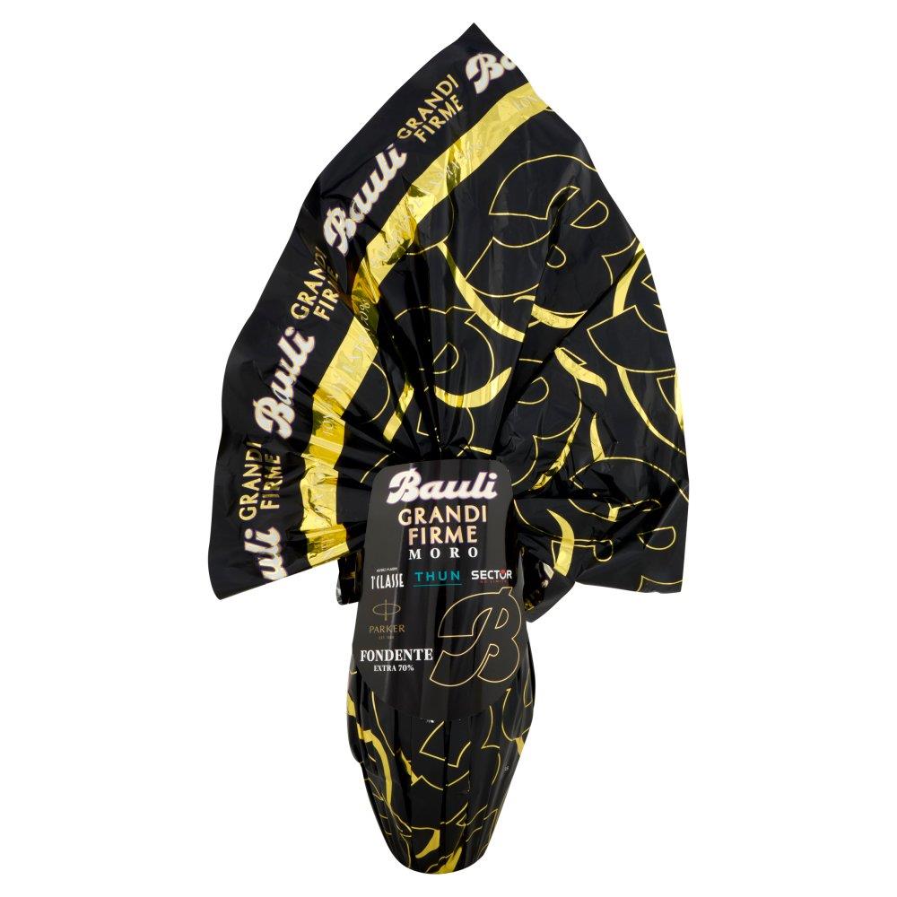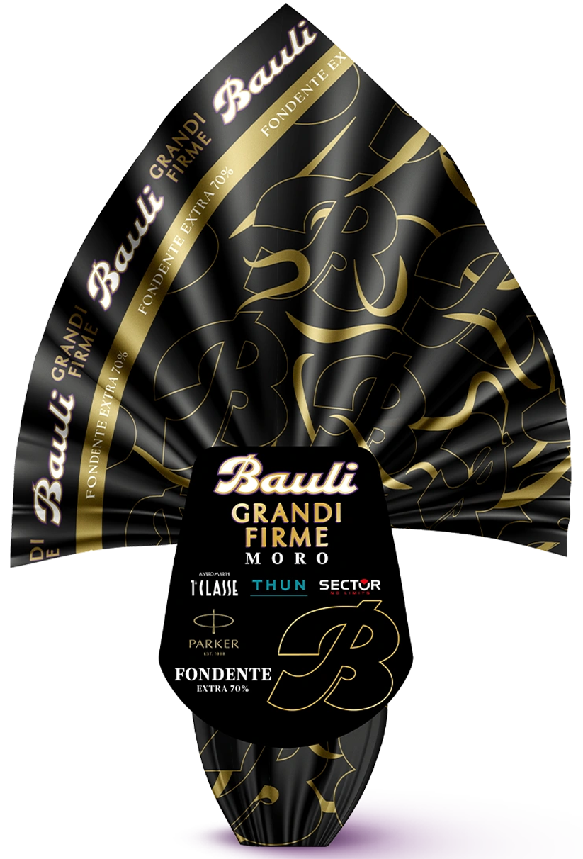 Uovo di Pasqua Bauli Grandi Firme Moro da 280g realizzato con cioccolato extra fondente al 70% di cacao. Un prodotto elegante e raffinato perfetto per chi ama il gusto intenso del cioccolato fondente. Contiene una sorpresa all’interno ed è ideale come regalo pasquale o da condividere durante le festività.