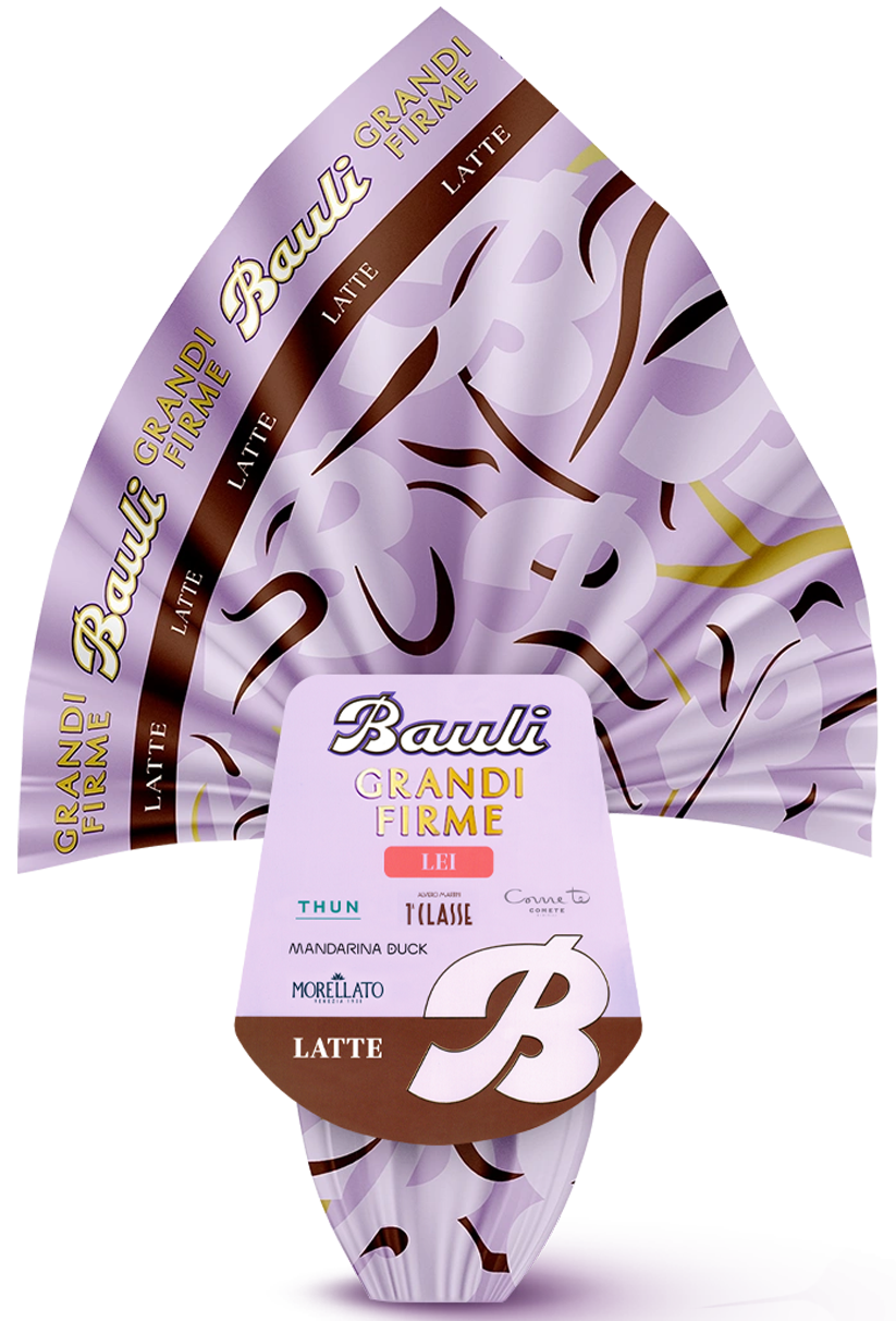 L’uovo di Pasqua Bauli Grandi Firme Lei al cioccolato al latte da 365g unisce il gusto del delizioso cioccolato Bauli alla sorpresa di un accessorio firmato. Un’idea regalo elegante e originale perfetta per donne e ragazze, con sorprese appartenenti alla collezione Grandi Firme realizzate in collaborazione con brand iconici.
