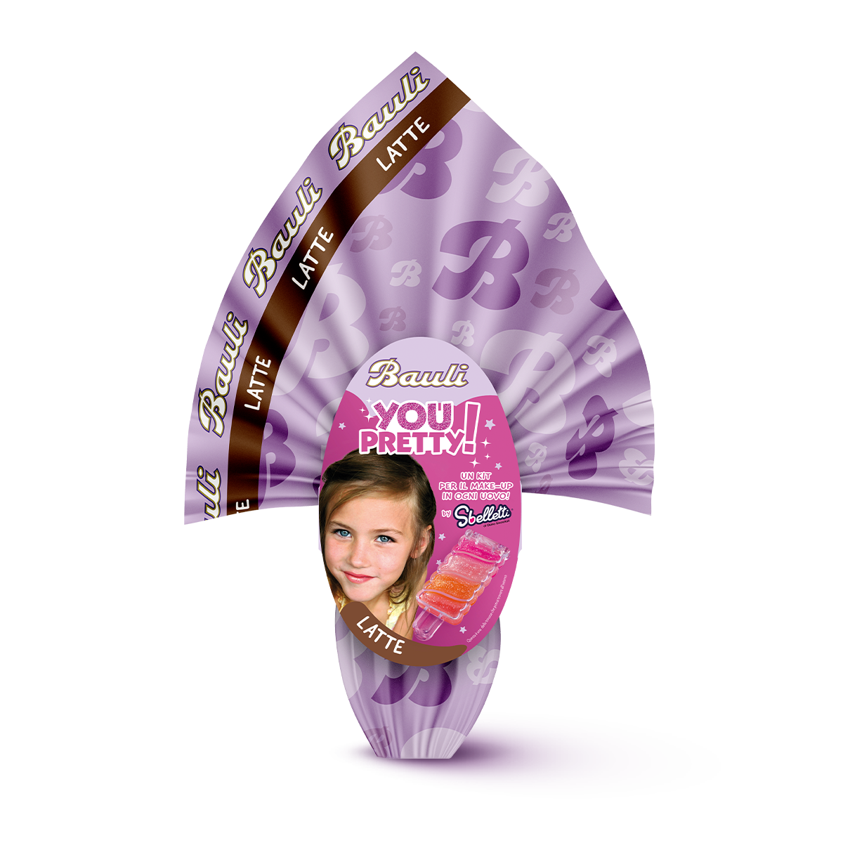L’Uovo di Pasqua Bauli You Pretty da 190g è realizzato con finissimo cioccolato al latte e contiene una sorpresa speciale: un kit make-up Sbelletti dedicato alle bambine. Un’idea regalo perfetta per rendere la Pasqua ancora più dolce e divertente.