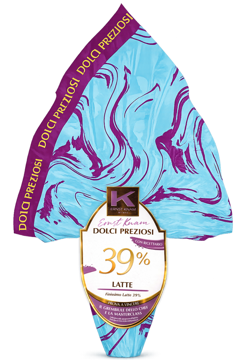Uovo di Pasqua Dolci Preziosi firmato Ernst Knam al cioccolato finissimo al latte 39% con vaniglia del Madagascar. Cremoso ed elegante, formato 240g, perfetto come regalo pasquale premium e da condividere in famiglia.