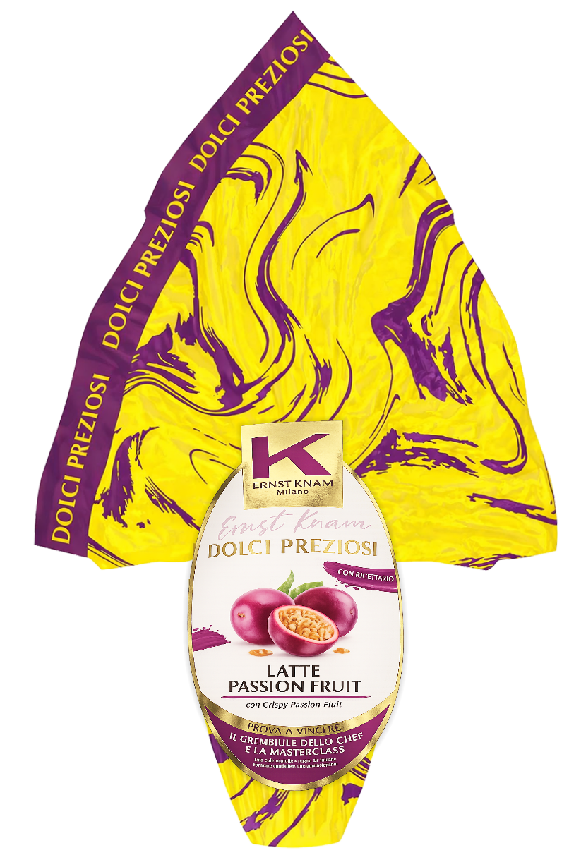 Uovo Dolci Preziosi firmato Ernst Knam al cioccolato finissimo al latte con inserto crispy al passion fruit. Un’esperienza gourmet da 260g che unisce cremosità e croccantezza in un gusto originale e raffinato, perfetto come idea regalo di Pasqua.