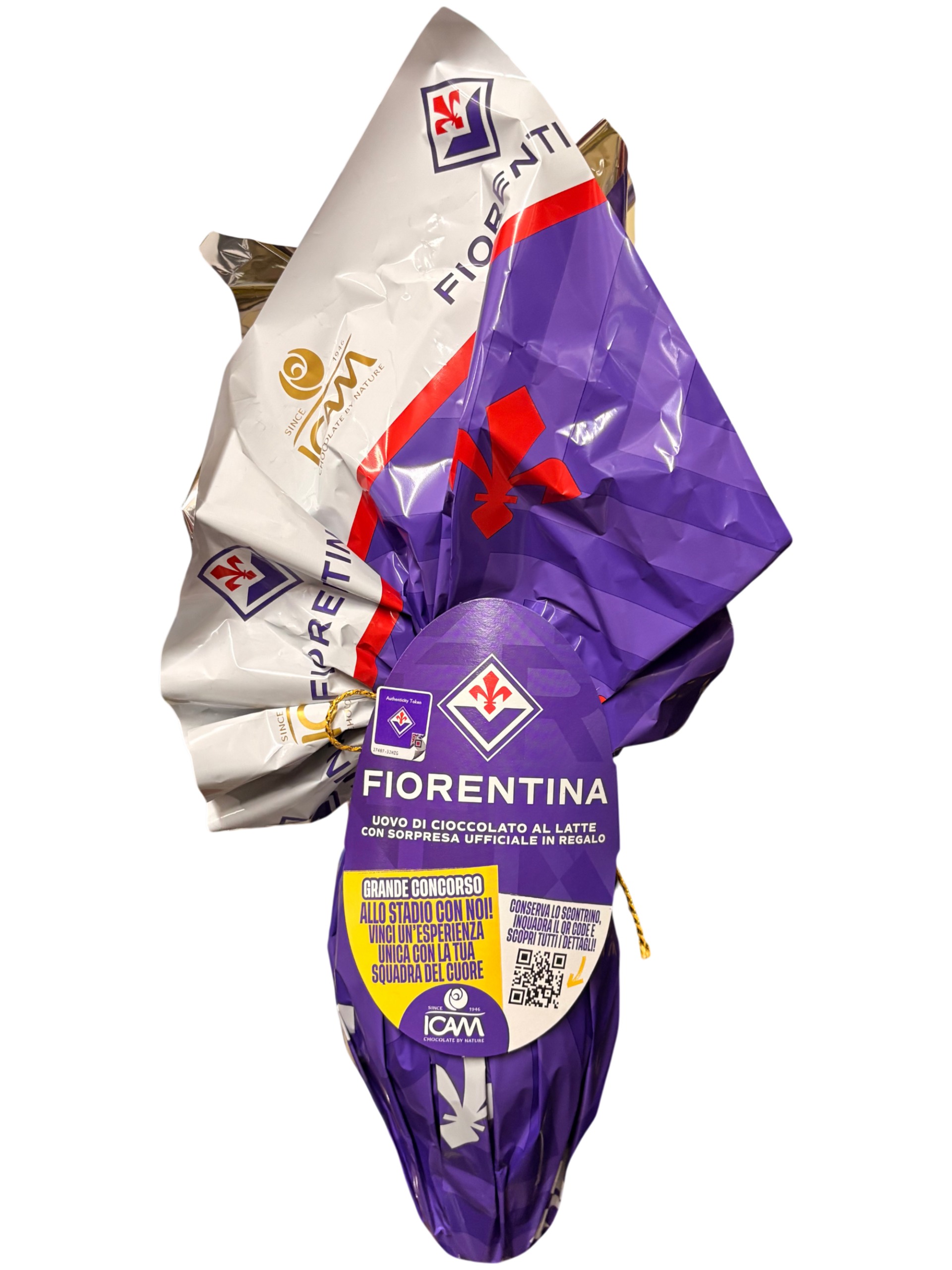 Scopri la magia della Pasqua 2026 con l’Uovo Fiorentina di Icam, un delizioso uovo di cioccolato al latte da 180g decorato con gli iconici simboli della squadra viola. Un’esperienza golosa per tutti i tifosi viola che combina la qualità del cioccolato italiano con la passione per il calcio. Perfetto come regalo pasquale per gli appassionati della Fiorentina di tutte le età.
