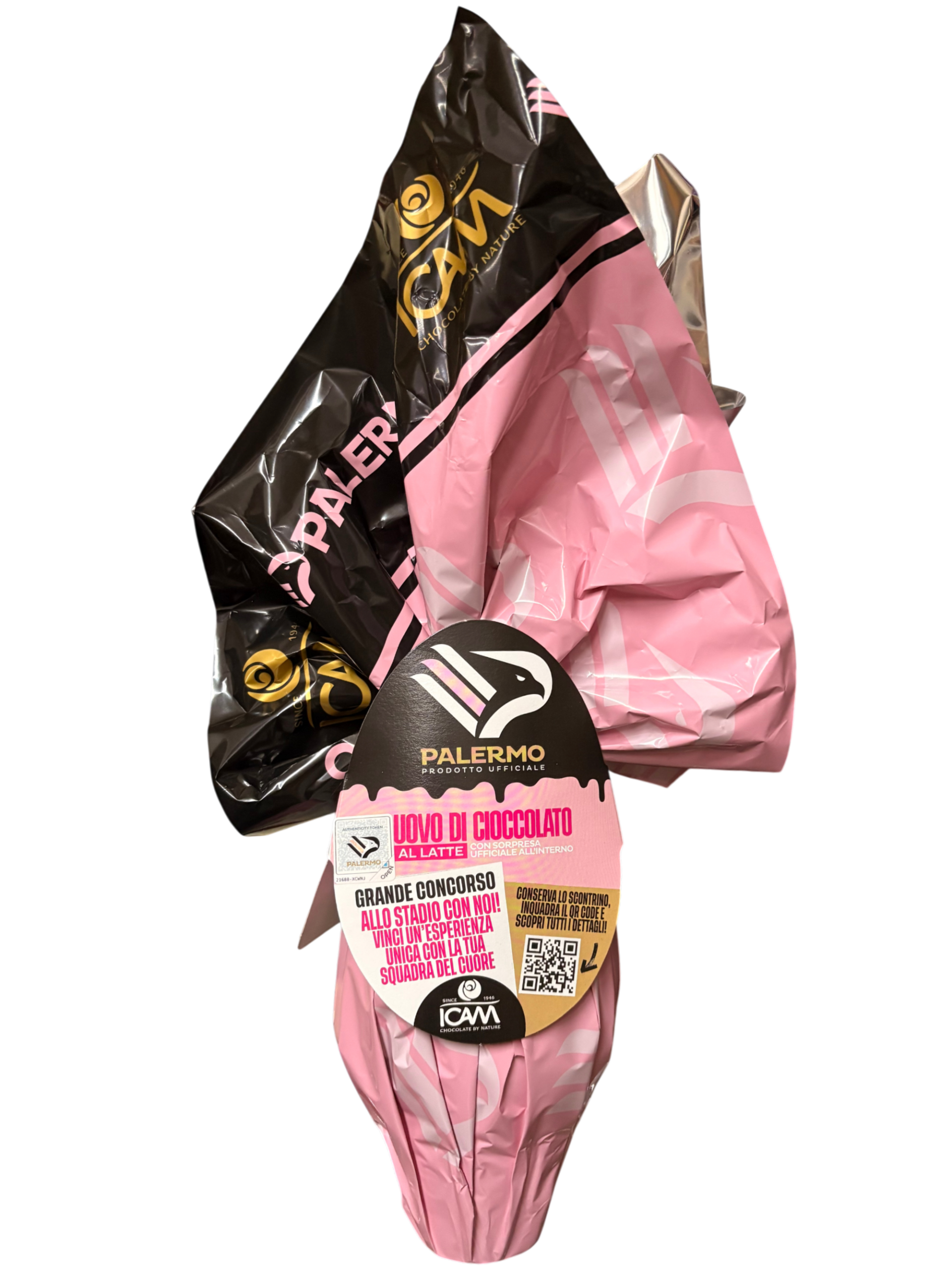 Festeggia la Pasqua con un tocco di passione sportiva e dolcezza! L’Uovo di Cioccolato al Latte Palermo Ufficiale ICAM è il regalo ideale per tutti i tifosi del Palermo Calcio, unendo il gusto inconfondibile del cioccolato al latte ICAM, un marchio italiano sinonimo di qualità e tradizione