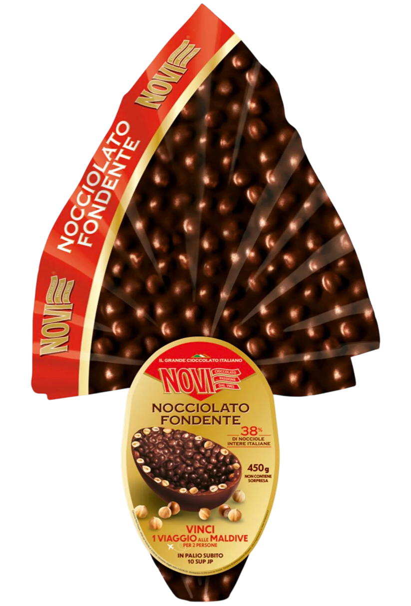 Scopri il lussuoso uovo di Pasqua Novi Nocciolato Fondente, un capolavoro di cioccolato italiano che unisce l’intensità del cioccolato fondente 50% alla croccantezza delle nocciole intere italiane. Questa edizione speciale da 450g presenta un design elegante con una texture unica di nocciole disposte in un motivo geometrico sulla superficie. Ogni morso offre un’esperienza sensoriale perfettamente bilanciata tra il ricco cioccolato fondente e la dolcezza naturale delle nocciole selezionate. L’uovo non è solo una delizia per il palato, ma nasconde anche una sorpresa speciale all’interno. La confezione, caratterizzata dai classici colori Novi rosso e oro, rende questo uovo un regalo perfetto per celebrare la Pasqua con stile e gusto. Un’autentica esperienza di cioccolato italiano che porta la tradizione pasquale a un nuovo livello di raffinatezza.
