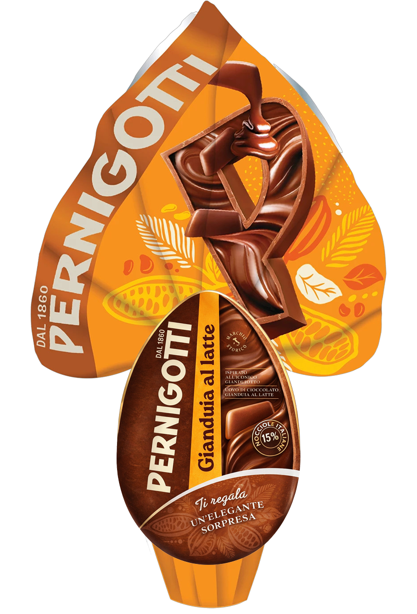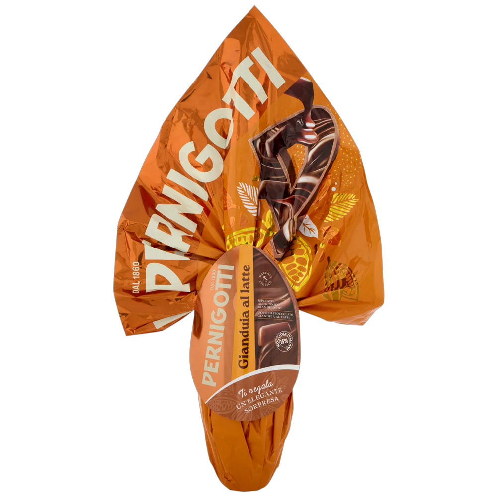 Uovo di Pasqua Pernigotti Gianduia a Latte da 240g al gianduia al latte con nocciole selezionate. Cioccolato cremoso e avvolgente, realizzato secondo la tradizione italiana dal 1860, con elegante sorpresa interna. Perfetto come regalo pasquale raffinato.