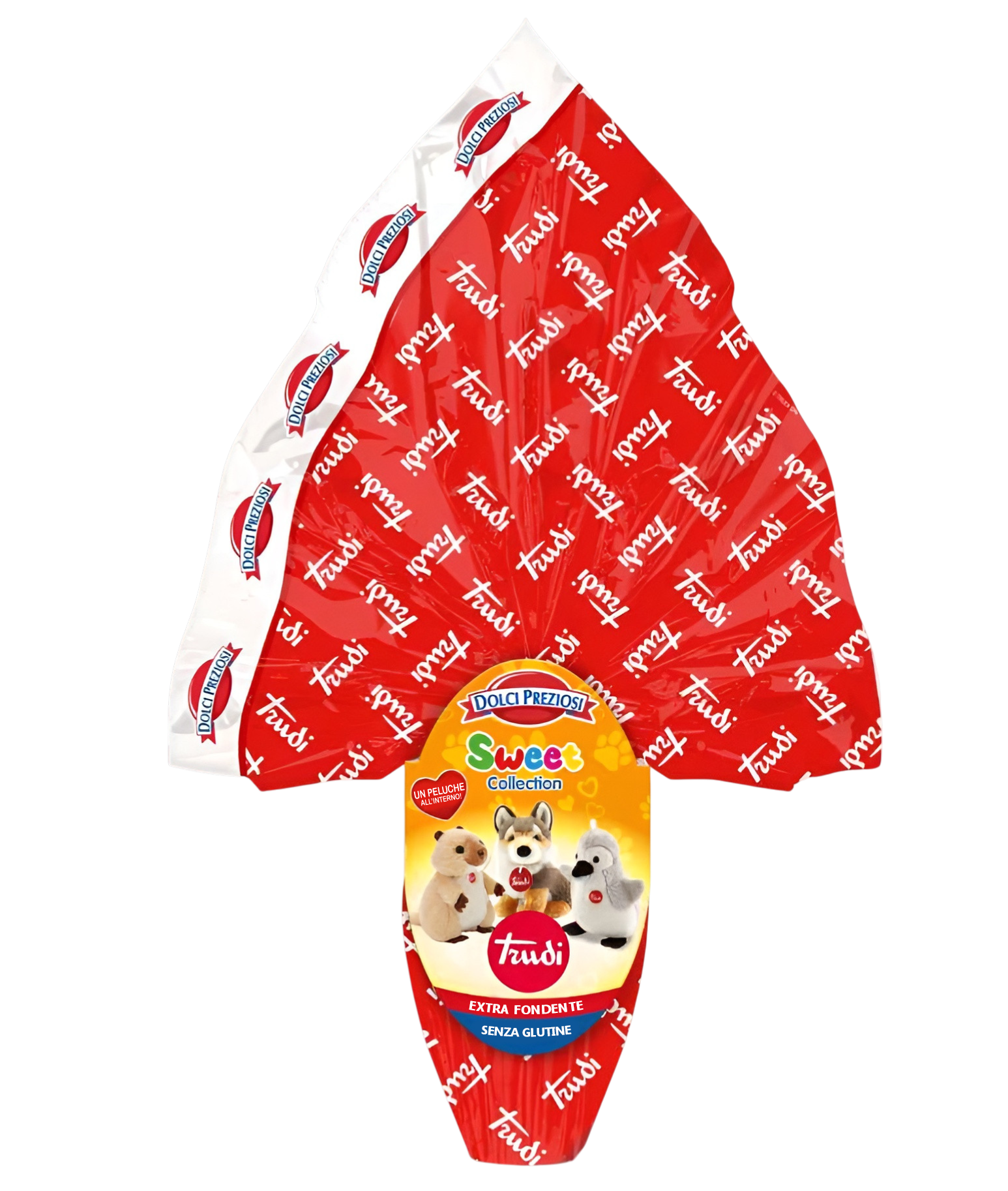 Uovo di Pasqua Dolci Preziosi Trudi Sweet Collection da 260g in cioccolato extra fondente con morbido peluche Trudi a sorpresa all’interno. Un regalo perfetto per i bambini che unisce il gusto del cioccolato alla magia di una dolce sorpresa.