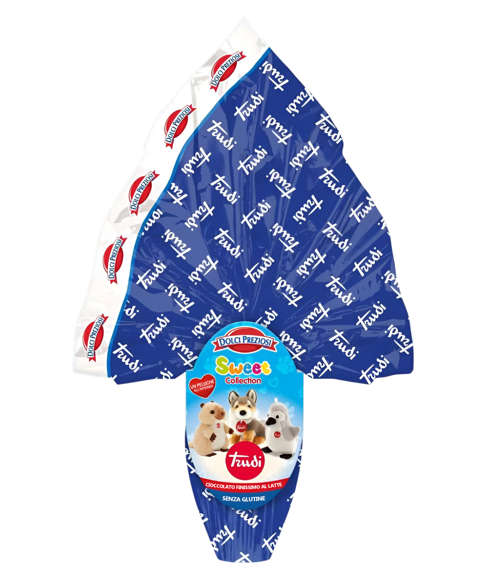 L’Uovo di Pasqua Dolci Preziosi Trudi Sweet Collection da 260g unisce il gusto del cioccolato al latte finissimo alla sorpresa di un morbido peluche Trudi all’interno. Una dolce idea regalo perfetta per bambini e collezionisti, con ricetta senza glutine e confezione colorata dedicata agli iconici animaletti Trudi.