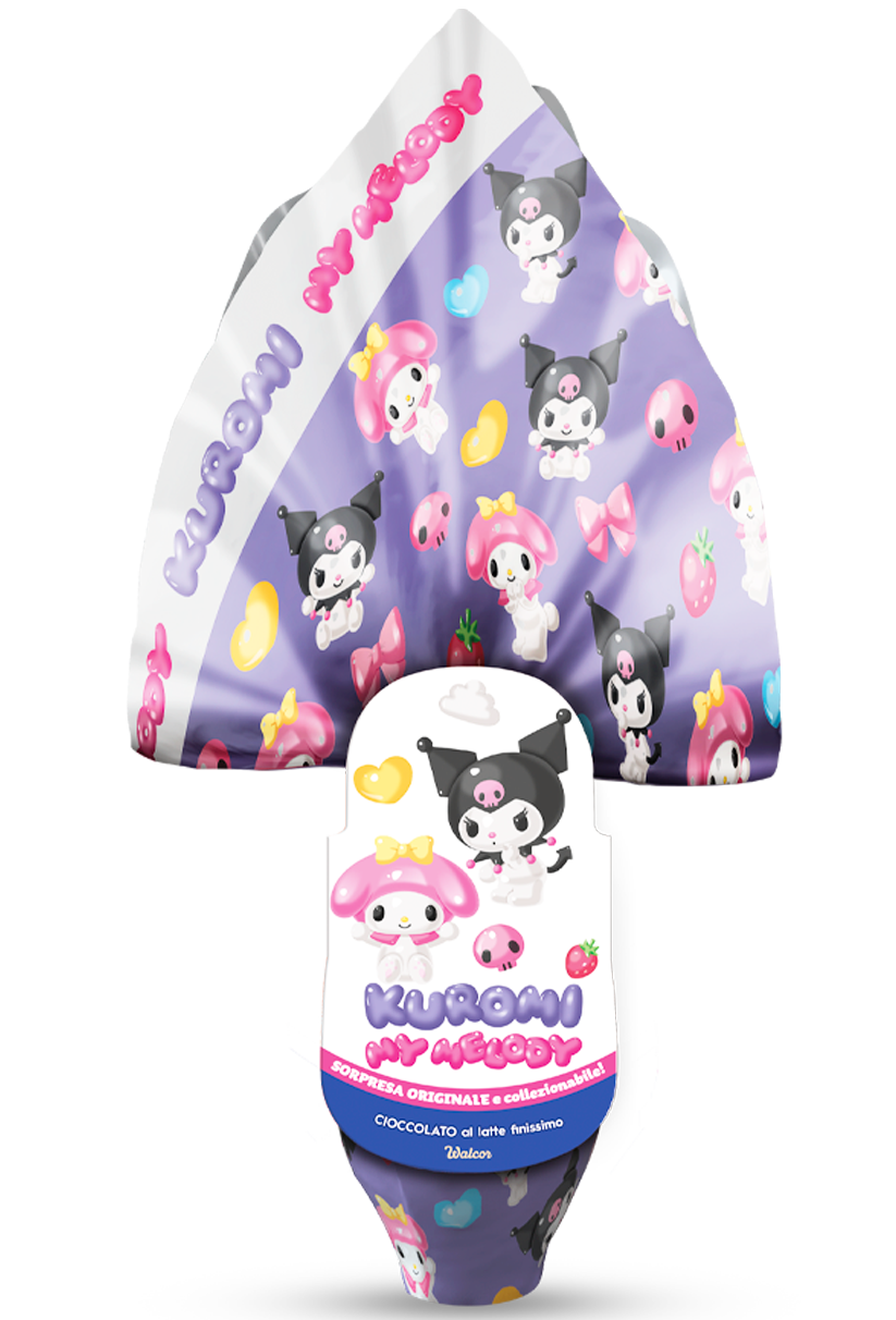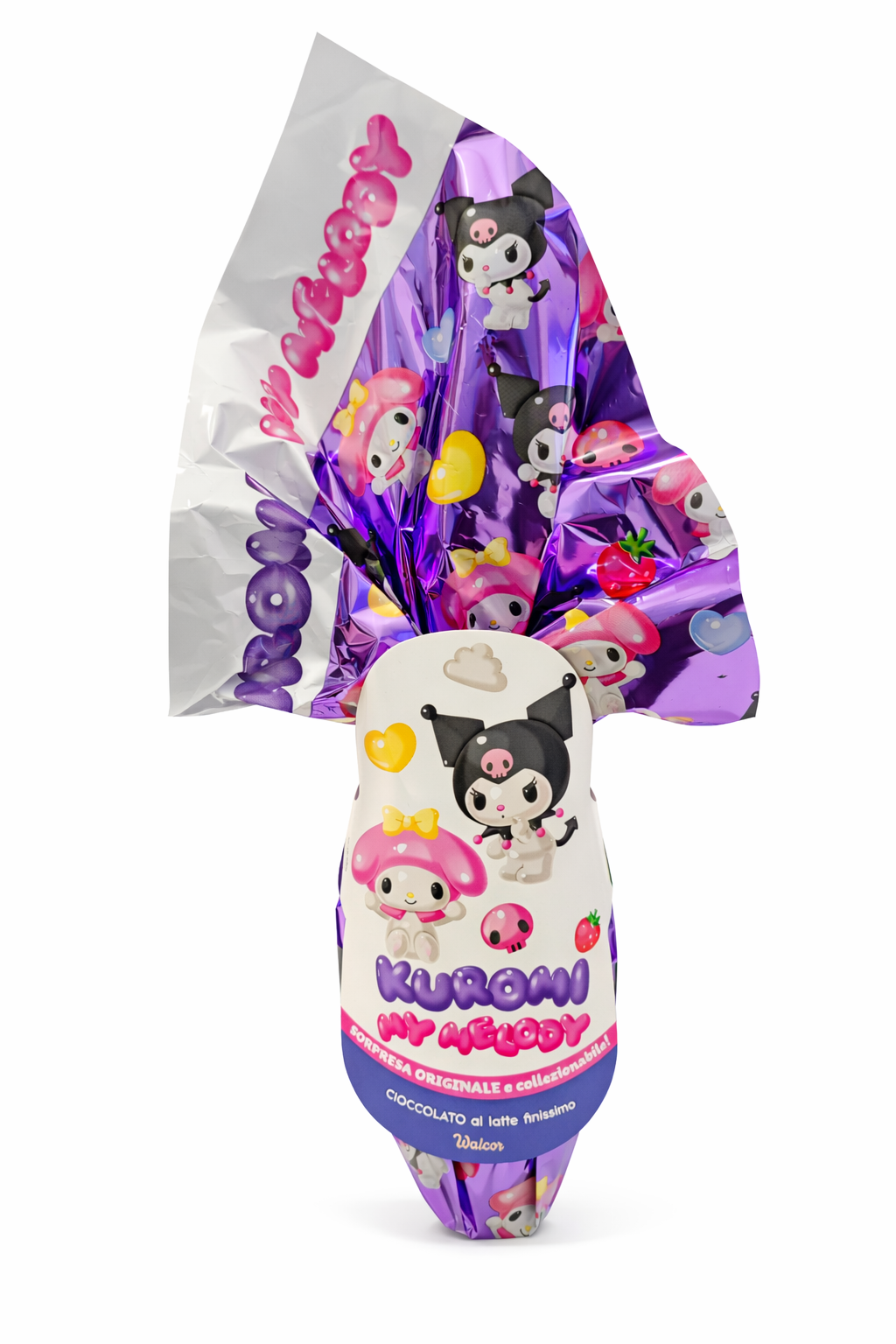 Quest’anno la Pasqua diventa ancora più dolce con l’Uovo di Pasqua Walcor al Cioccolato al Latte Finissimo dedicato al dolcissimo personaggio Kuromi My Melody. Un’esplosione di tenerezza e bontà racchiusa in 150 grammi di puro piacere, pensata per sorprendere grandi e piccini con un perfetto equilibrio tra gusto e fantasia.