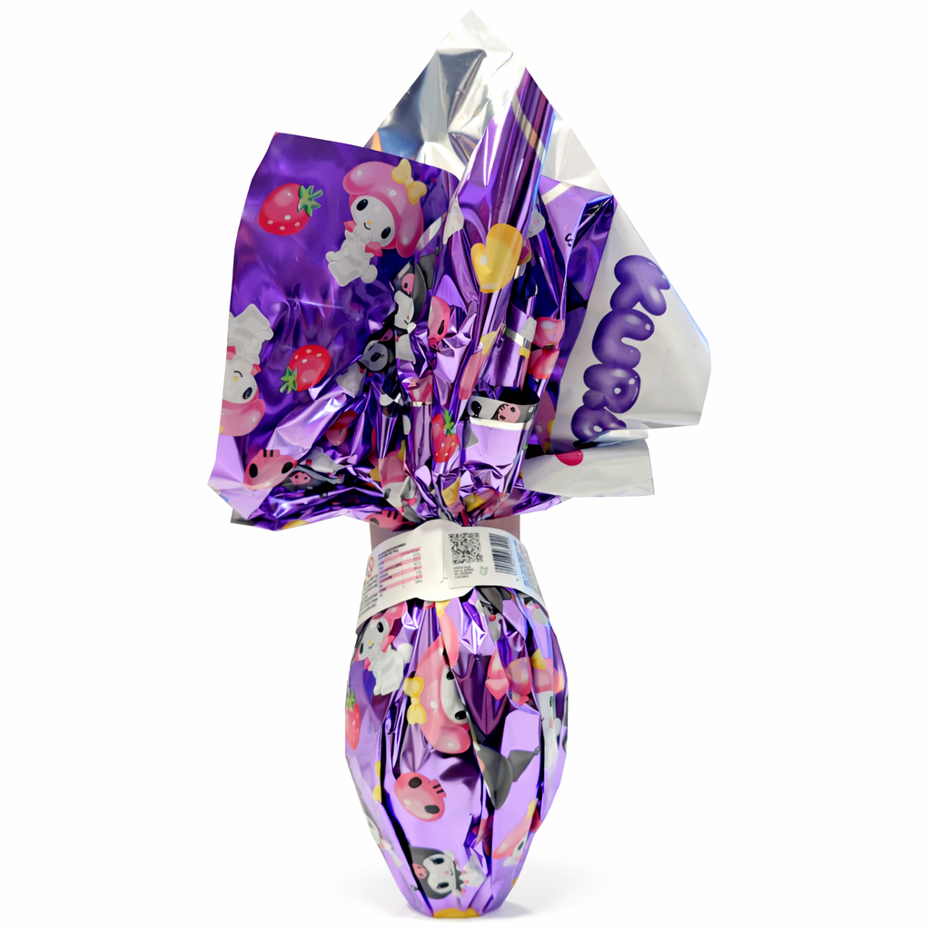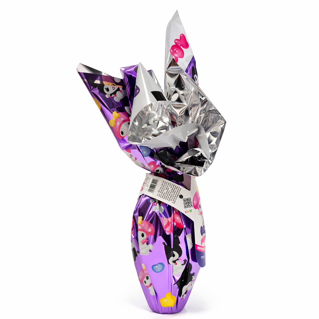 Realizzato con cioccolato al latte finissimo, dal sapore avvolgente e dalla consistenza vellutata, questo uovo è ideale per chi ama i sapori classici ma desidera un prodotto dal design unico e riconoscibile. L’incarto ufficiale Kuromi My Melody, colorato e accattivante, lo rende perfetto come idea regalo pasquale per bambini, ragazzi e collezionisti del mondo Sanrio.