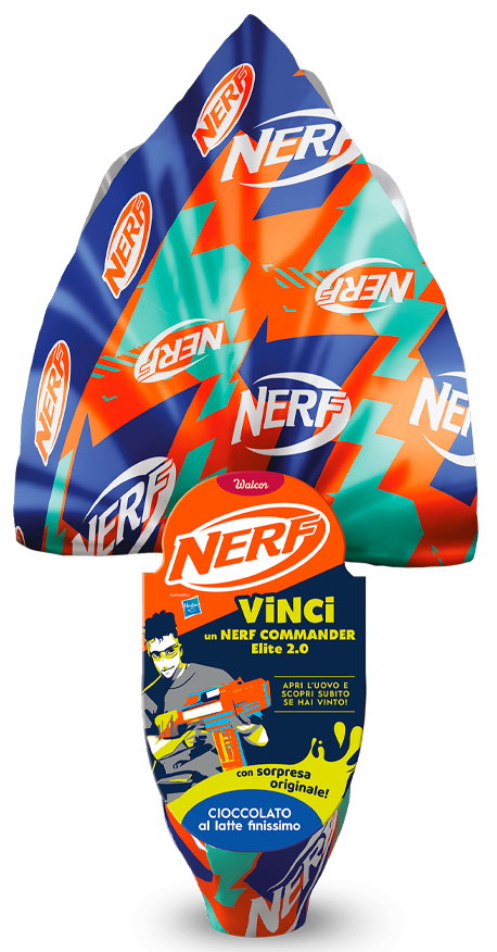 All’interno è presente una sorpresa ispirata al mondo Nerf, pensata per rendere ancora più emozionante il momento dell’apertura. Un perfetto connubio tra tradizione pasquale e divertimento.