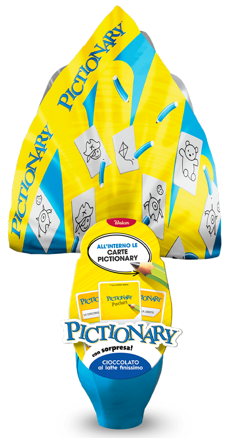 Festeggia questa Pasqua 2025 con i tuoi amici giocando al gioco da tavolo più amato di sempre…Pictionary! Troverai la versione tascabile all’interno di un guscio di finissimo cioccolato al latte dell’uovo Walcor Pictionary. L’obiettivo del gioco è quello di disegnare e indovinare parole o frasi in un tempo limitato, offrendo momenti di divertimento e risate. Acquistare l’uovo Pictionary significa portare a casa, oltre che tantissimo gusto, un gioco che garantisce ore di divertimento per tutta la famiglia. È perfetto per le serate di gioco, le feste e gli incontri con gli amici. La varietà degli indizi e i diversi livelli di difficoltà assicurano che ogni partita sia diversa e coinvolgente.