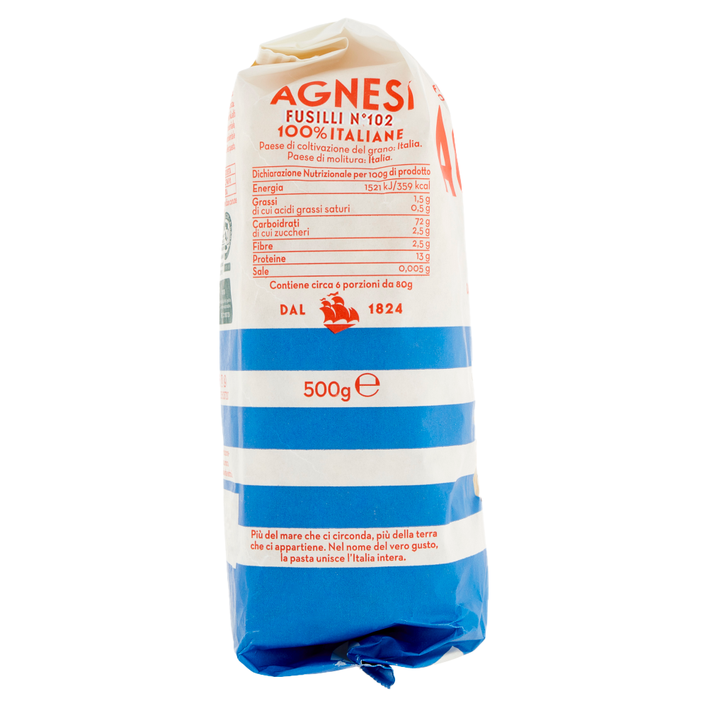 Scopri la qualità superiore della pasta Agnesi Fusilli n°102, realizzata con semola di grano duro selezionato. Questo formato di pasta, dal caratteristico design a spirale, è perfetto per trattenere sughi ricchi e saporiti, rendendo ogni piatto un’esperienza culinaria indimenticabile!