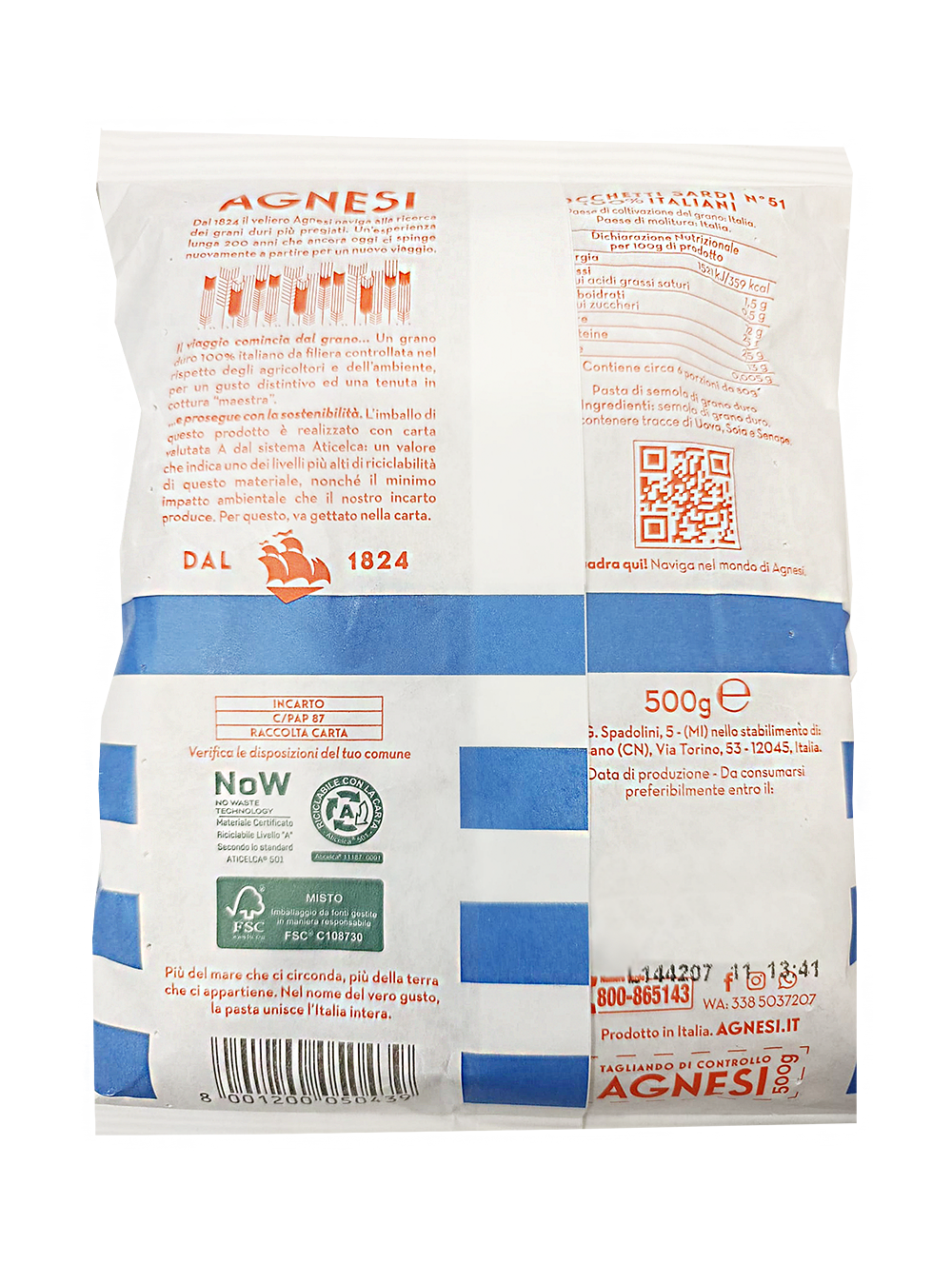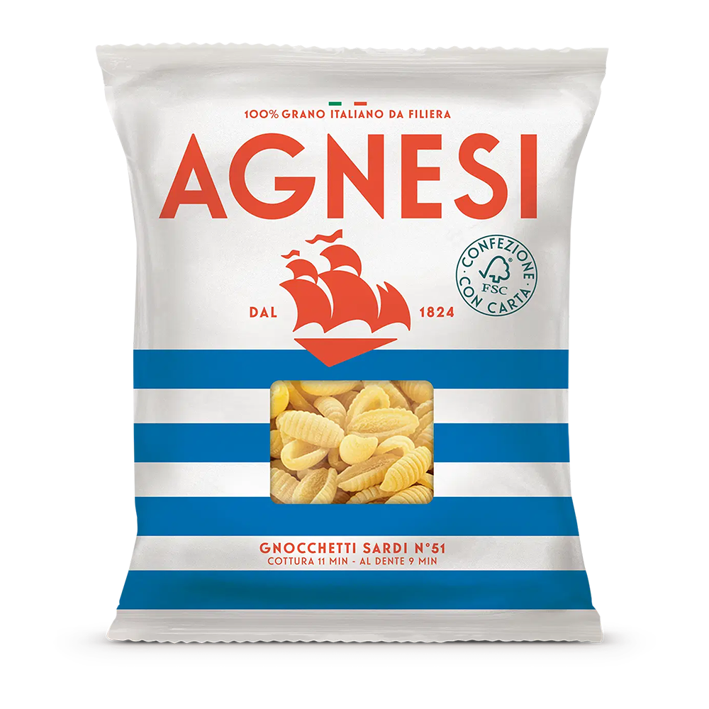 Scopri la qualità superiore della pasta Agnesi Gnocchetti Sardi n°51, realizzata con semola di grano duro e trafilata al bronzo per una consistenza perfetta. Ogni confezione da 500g è ideale per preparare piatti autentici e gustosi, mantenendo intatti i sapori e le proprietà nutritive. Scegli Agnesi per un’esperienza culinaria che esalta la tradizione italiana e porta in tavola il meglio della pasta.