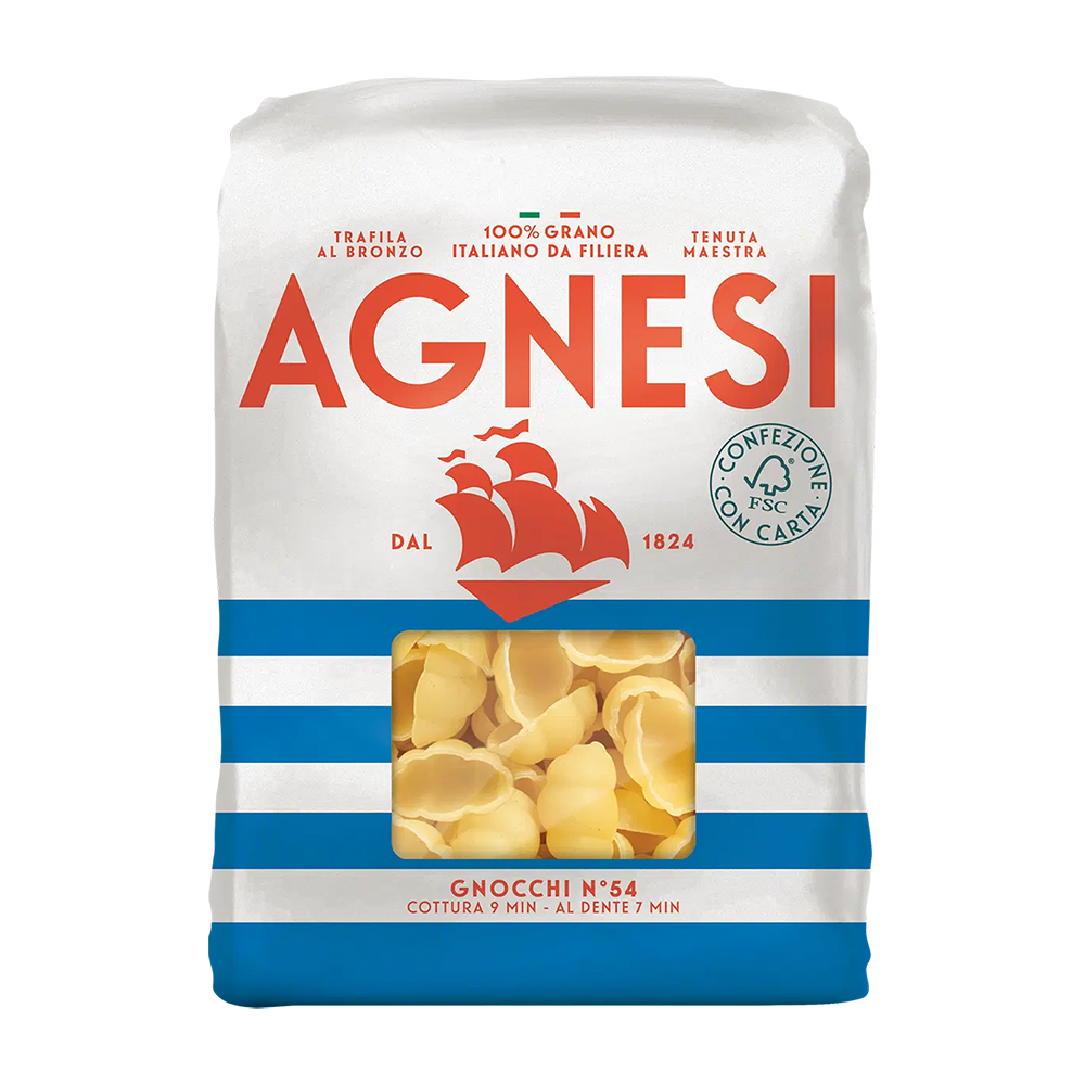 Scopri la qualità superiore della pasta Agnesi con i Gnocchi n°54, realizzati con semola di grano duro. Ogni confezione da 500g è perfetta per preparare piatti deliziosi e autentici, portando in tavola il sapore della tradizione italiana!