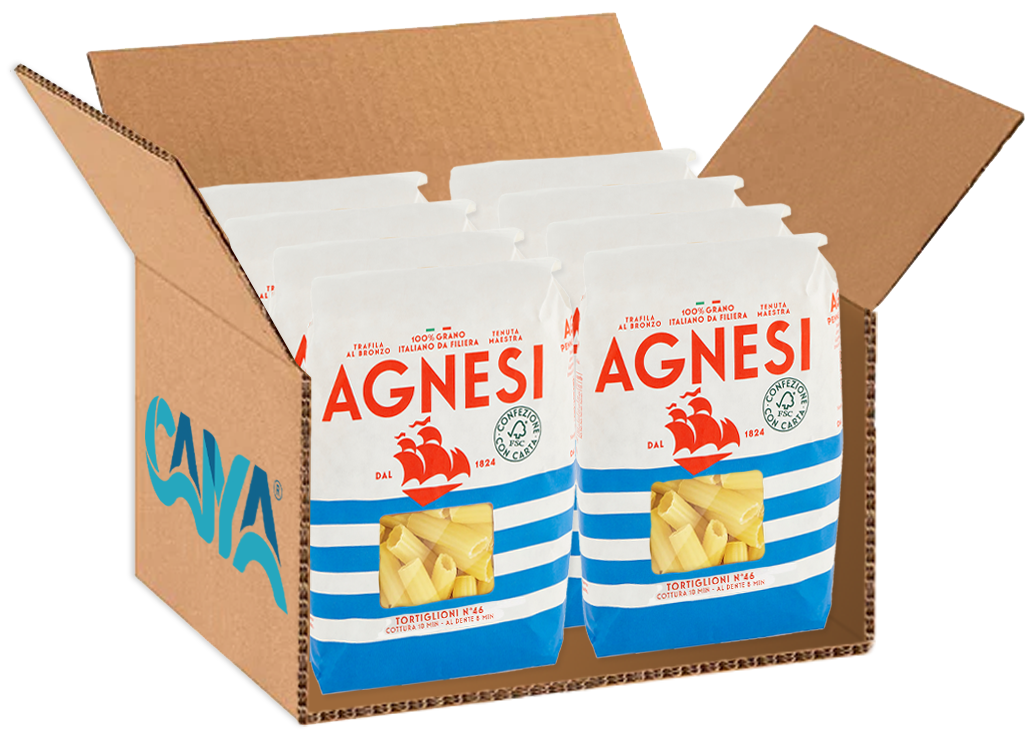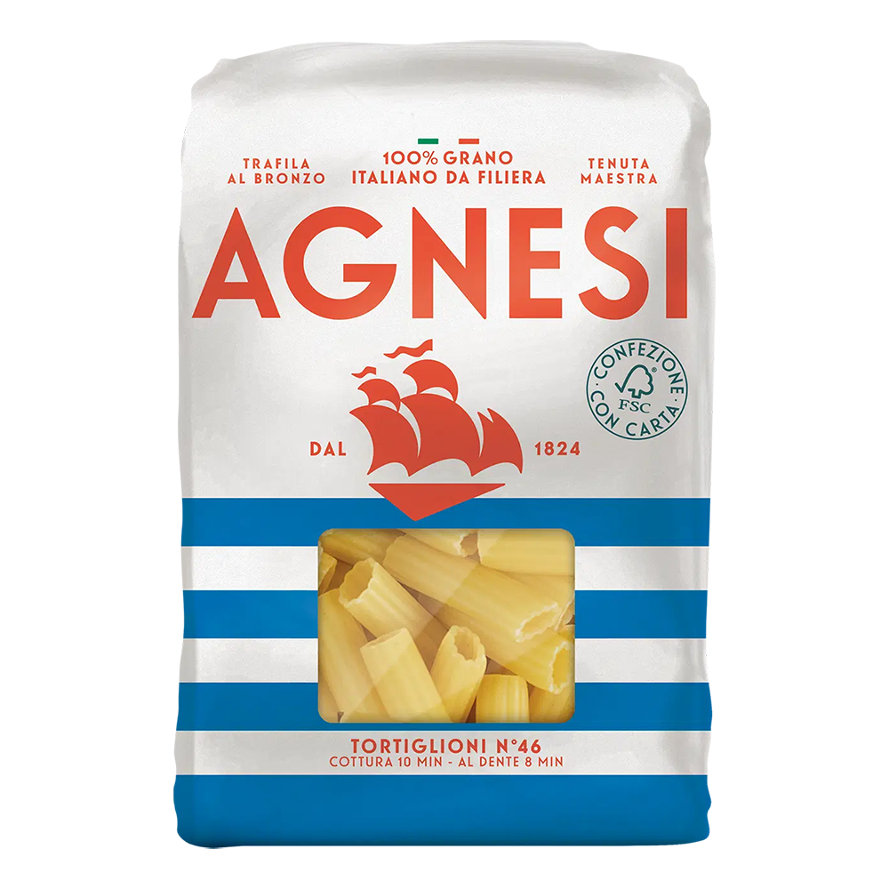Scopri la pasta Agnesi Tortiglioni n°46, un’eccellenza italiana realizzata con semola di grano duro di alta qualità. Questo formato caratteristico, con la sua superficie rigata, è perfetto per trattenere sughi ricchi e saporiti, rendendo ogni piatto un’esperienza culinaria indimenticabile!