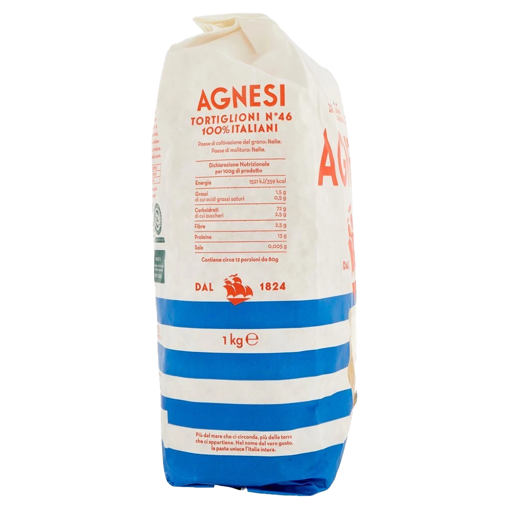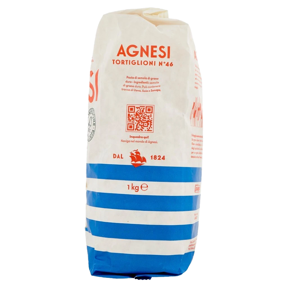Scopri la pasta Agnesi Tortiglioni n°46, un’eccellenza italiana realizzata con semola di grano duro di alta qualità. Questo formato caratteristico, con la sua superficie rigata, è perfetto per trattenere sughi ricchi e saporiti, rendendo ogni piatto un’esperienza culinaria indimenticabile. Confezionata in un elegante sacchetto a righe blu e bianche, la pasta Agnesi non è solo un alimento, ma un simbolo di tradizione e passione per la cucina. Scegli la qualità e il gusto autentico per i tuoi pasti quotidiani con 500g di pura bontà.