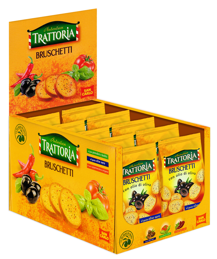 Scopri l’autentico sapore italiano con i Bruschetti Autentica by San Carlo Trattoria al gusto di olive nere. Questa pratica confezione contiene 10 pacchetti da 50g ciascuno, perfetti per ogni occasione. I bruschetti sono croccanti crostini preparati con cura, arricchiti dal sapore intenso e mediterraneo delle olive nere. Ideali come aperitivo, snack o accompagnamento per antipasti, questi bruschetti rappresentano l’essenza della tradizione gastronomica italiana.
